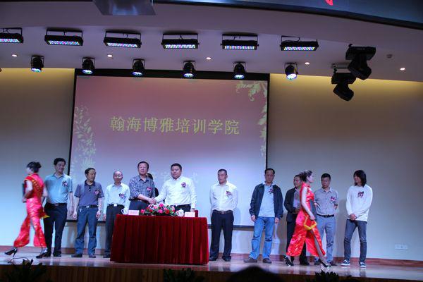 2013年4月27日上午,我院与香港关心下一代慈善基金协会都江堰市多关心投资管理有限责任公司联合办学协议签字及瀚海博雅培训学院揭牌仪式在学院西区举行,参加此次活动的有学院党委书记孙培生、副厅级调研员李肇全、党委副书记黄天贵、副院长徐时彬、岳文喜、院长助理王开淮,香港关心下一代慈善基金协会主席杨三忠、理事曾凡平、凌子衍,都江堰市多关心投资管理有限责任公司总经理曹育敏、董事杨建,都江堰瀚海博雅餐饮部总经理黄若乔,广东奇美集团著名设计师林荣峰,我院院办、宣传部、产学合作管理中心、管理系、艺术系、财经系的负责人参加了签约及揭牌活动。这次签约及揭牌活动,标志着我院对外合作的第二个学院四川工商职业技术学院瀚海博雅培训学院正式宣告成立。