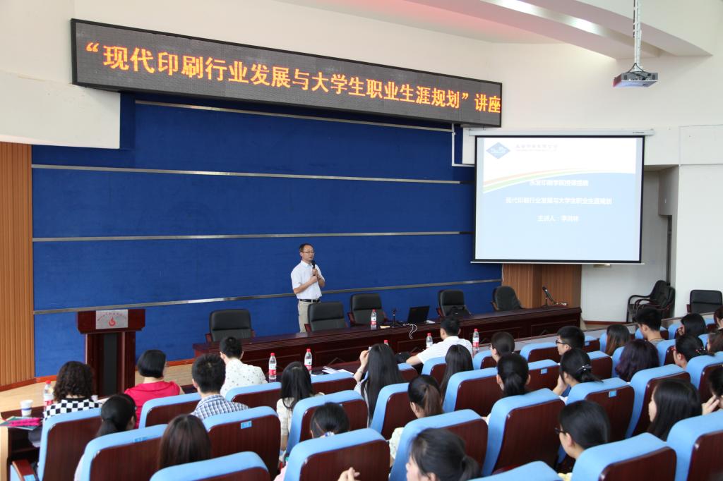 李洪林副董事长现任永发印务(四川)有限公司常务副总、四川省印刷技术协会副理事长、全国轻工职业教育教学指导委员会包装印刷专业委员会委员。在讲座中,李副董事长依据他从业几十年的经验,向同学们详细阐述了印刷技术的过去、现在及未来,并生动幽默的给同学们分享了什么是职业生涯规划、如何做好自己的职业生涯规划等。最后,在提问环节,同学们积极踊跃地提出了自己关心的问题,李副董事长耐心地一一解答。两个半小时的讲座,在同学们热情的与主讲人积极互动中结束了,同学们依依不舍的作别李副董事长,并期待着下次的讲座。