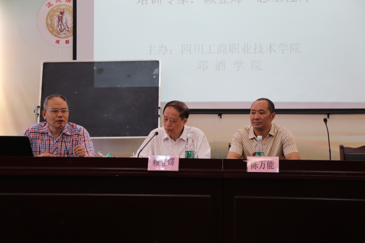 2015年5月15日,我院邛酒学院外聘教师,教授级高级工程师、全国白酒专家委员会专家、首届中国酿酒大师、中国白酒首席品酒师、中国白酒科学技术突出贡献专家,四川水井坊股份有限公司副总经理、总工程师赖登燡为邛崃白酒工业园区各企业员工们进行了“如何解决浓香型白酒中乳酸乙酯含量偏高问题”的专题讲座。讲座由酒类与食品工程系主任,邛酒学院院长朱克永主持,邛崃白酒工业园区26家白酒生产企业近200名从事白酒生产的员工聆听了讲座。